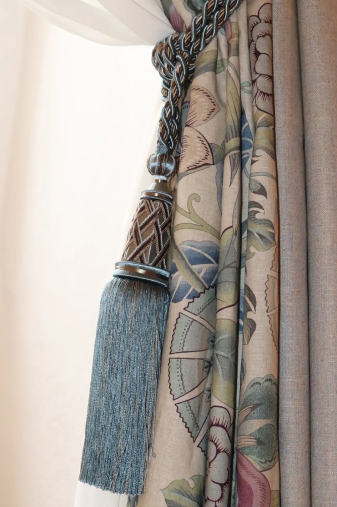 To achieve the necessary style and expression, we use various types of pleats and applications, such as high tabs, braids, ties, etc., when sewing curtains and drapes to measure.